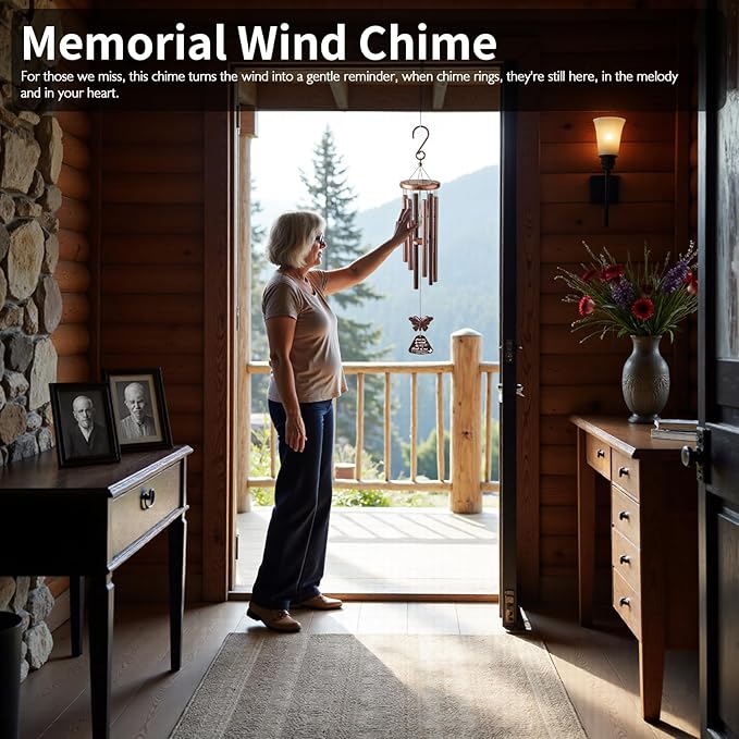 Wind Chimes for Outside with Butterfly Wind Catcher, 33" Memorial Metal Wind Chime Suitable for Patio, Garden Hanging Decorations, Deep Tone Soothing, Perfect Christmas Birthday Gifts for Women