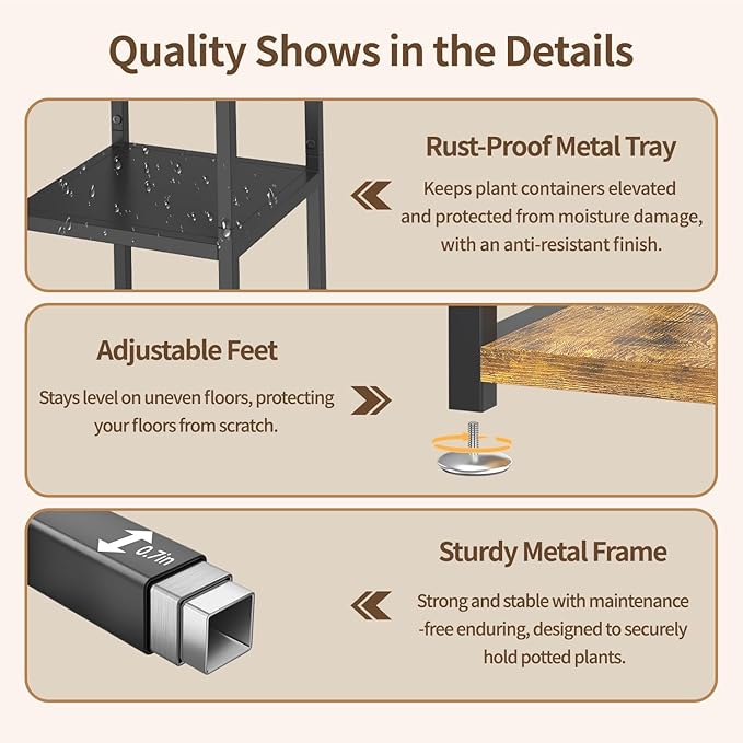 - 【Effortless Care, Lasting Beauty】Finished with a rust-resistant, waterproof coating that stands up to daily use and moisture, making cleanup a breeze. Just wipe and go—no hassle, no fading, just a pristine look that lasts for years. Enjoy a clean, polished tall plant stands—and more time enjoying your plants.