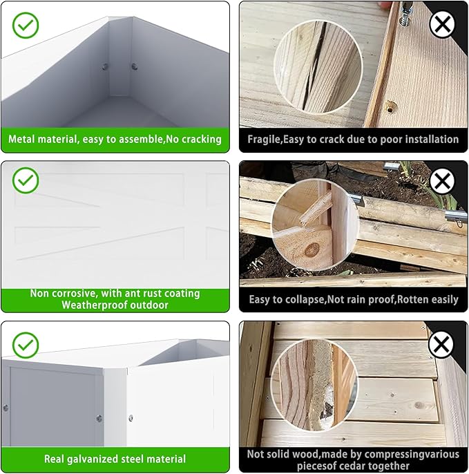 - DURABLE METAL MATERIAL: Made of stable galvanized steel raised garden beds with strong load-bearing capacity and anti-rust coating for durability. It can be placed outdoors or indoors for a long time, and the appearance can be as clean as new after wiping.