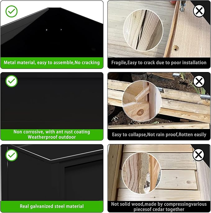 - ERGONOMIC DESIGN: This raised garden bed for growing vegetables outdoors is our custom-designed style. The raised garden bed is protected by pads at 4 corners, which can effectively prevent sharp corners from poking people and prevent the floor from being scratched.