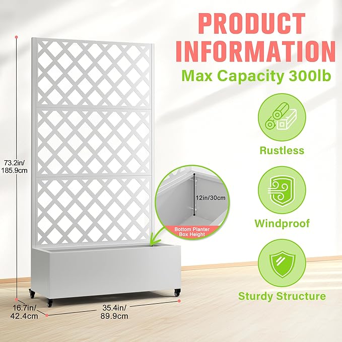 - 🌸 Elegant Privacy & Functional Use Not just decorative, this garden planter with trellis also serves as a privacy screen or outdoor divider. As a planter with trellis, it’s perfect for climbing plants like roses or vines, and as a planter box with trellis, it adds style and separation to any space.