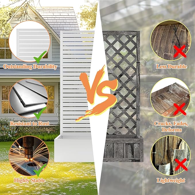 - 🌸 Elegant Privacy & Functional Use Not just decorative, this garden planter with trellis also serves as a privacy screen or outdoor divider. As a planter with trellis, it’s perfect for climbing plants like roses or vines, and as a planter box with trellis, it adds style and separation to any space.