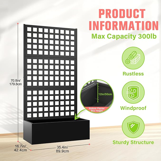 - 🌸 Elegant Privacy & Functional Use Not just decorative, this garden planter with trellis also serves as a privacy screen or outdoor divider. As a planter with trellis, it’s perfect for climbing plants like roses or vines, and as a planter box with trellis, it adds style and separation to any space.
