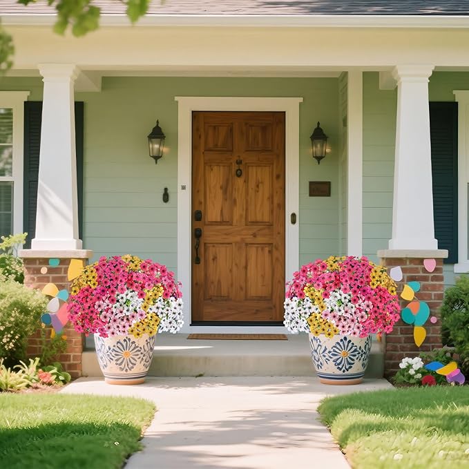 - 💐Versatile for Indoor/Outdoor: Artificial flowers perform well in porches, gardens, pots, windowsills & more—withstanding rain/wind while adding year-round color to weddings, memorials, and any space.
