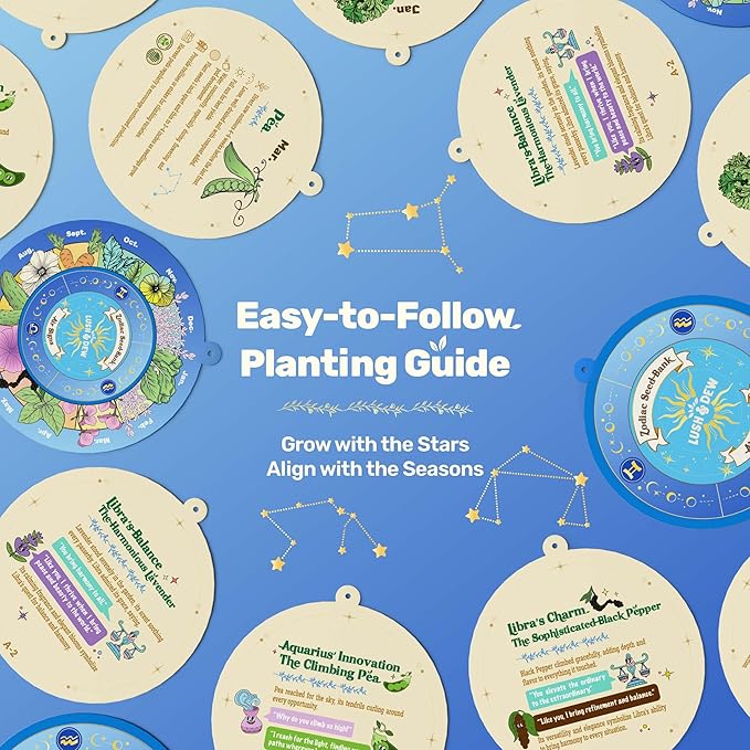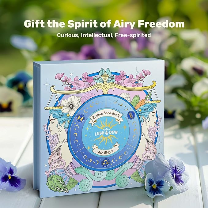 Lush&Dew Gardening Gift for Women Men, Zodiac Garden Seed Bank, 12 Types Non-GMO Vegetables Flower Seeds in Seed Organizer, Magnetic Gift Box, Witchcraft Supplies, Air Signs Taurus Virgo Capricorn
