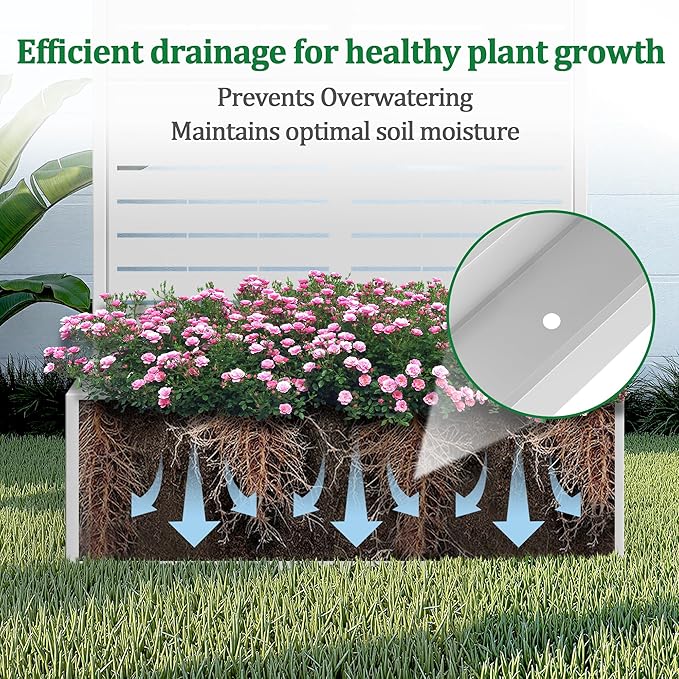 - Easy Installation and Maintenance: The metal planter box is crafted for straightforward setup and user convenience. The raised planter can be put together swiftly without requiring complex tools or detailed instructions. The flower bed’s sturdy materials and solid construction reduce maintenance needs, allowing you to enjoy gardening with minimal hassle.