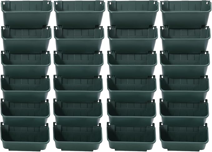 Vertical Wall Planter with 24 Plastic Pots, Wall-Mounted Garden Planter Stackable Wall Hanging Flower Pot Clasp Design with Grooves Drainage Holes for Indoor and Outdoor (Army Green 24)