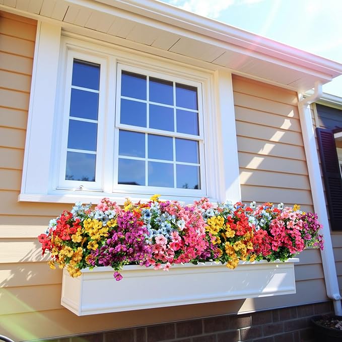 - UV Resistant Fake Outdoor Flowers: faux spring summer fall flowers for outdoor planters, everlasting bloom, no more sun-fading worries! 24 bundles faux flowers feature uv resistance materials, retaining vibrant colors season after season.