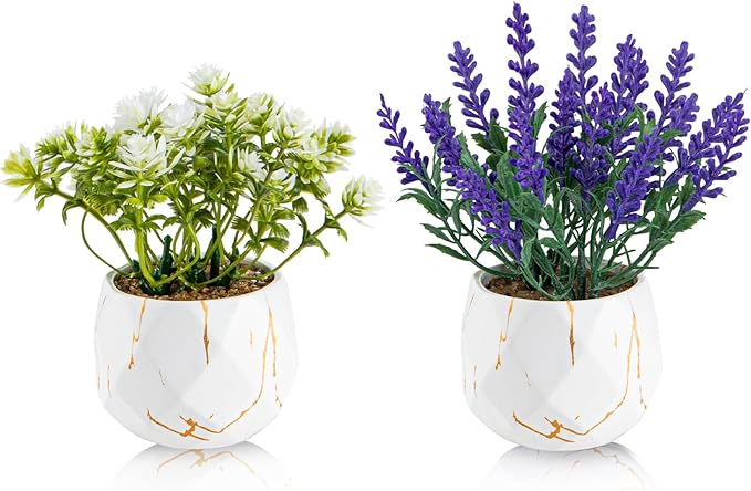 - 🌿2-Pack Realistic Artificial Plants: This set includes one artificial lavender and one faux wildflower potted plant. These small fake plants bring lifelike beauty and rich texture to your home decor—perfect for those who love greenery without the upkeep.