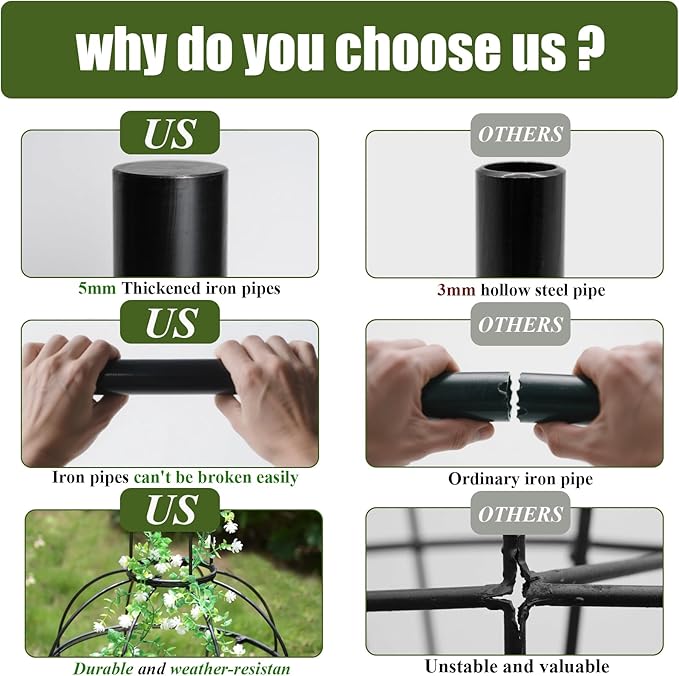 - Elegant Design: The GOOOXIM obelisk trellis showcases an innovative patented design featuring a stunning double-layer sphere and a refined square-pointed structure. Crafted from sleek black metal, it adds a touch of artistic elegance to your garden or home decor.