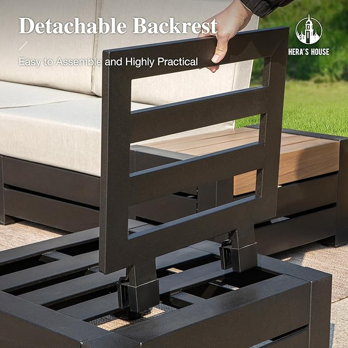 - 【Modular Design & Easy Assembly】This versatile outdoor sofa set includes 4 single sofas, 1 Rectangular edge table and 1 square table, seating up to 3 people, designed for free arrangement to suit any layout. Featuring detachable backrests and easy assembly, it’s the perfect addition to your patio for stylish, functional outdoor living