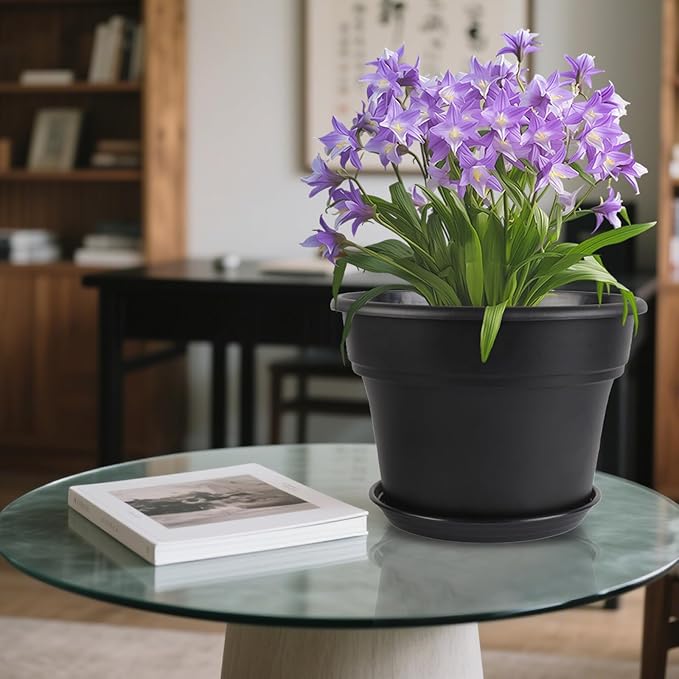 - 【Excellent Drainage and Tray】6'' plastic pots for plants are equipped with pre-drilled drainage holes and a removable saucer, these indoor planting pots ensure proper water flow, prevent root rot, and protect surfaces from excess moisture. Saucers capture overflow water for easy cleanup.