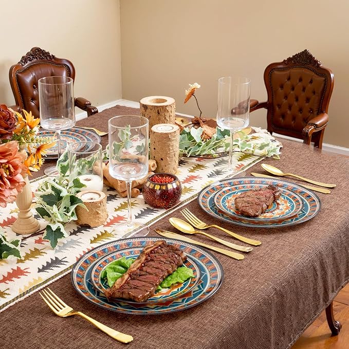- Versatile Sizing Options: Offering versatile sizing options, these boho plates enable a complete dinnerware collection for diverse dining needs. The 60-piece set—30 dinner and 30 dessert plates—perfectly accommodates a 30-person gathering for any occasion.