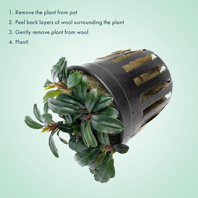 - Ships potted for convenience—simply remove and secure the rhizome to hardscape using thread or glue, keeping it above substrate to prevent rot.