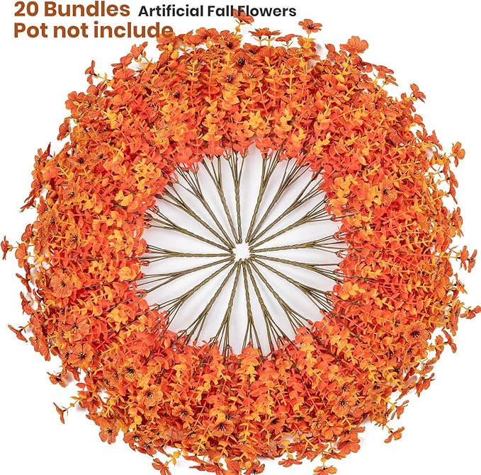 - Package: The package includes 20 bundles artificial fake flowers.Pot not included.