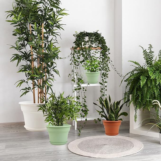 - 【Multiple Sizes to Meet Various Planting Needs】Pot for plants indoor outdoor are available in size 6-8-10-11-13-16 inch. Plastic flower pots are perfect for planting a wide range of small to medium-sized plants commonly found in homes and offices. Whether it’s orchids, succulents, herbs, snake plants, mints, cacti, aloes, peace lilies, or more, these garden pots with drainage and saucer are designed to accommodate them all.