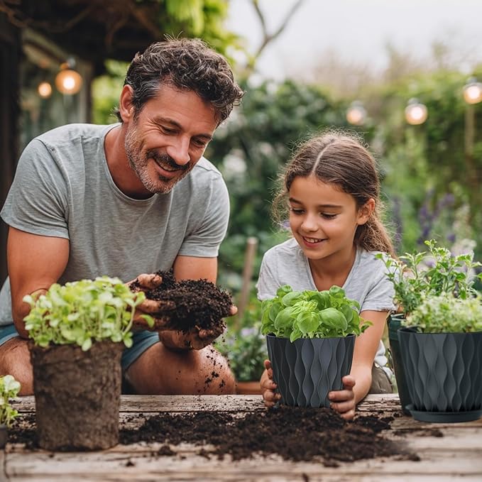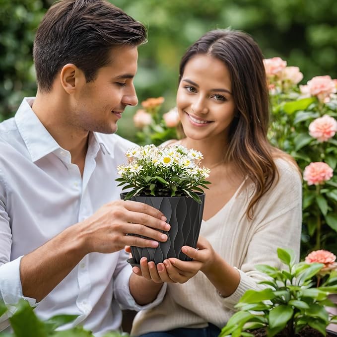 - 【Modern Wave Texture Design】With a simple modern aesthetic and a clean matte finish, this set of 5 flower pots features a 3D wave-like texture, adding a touch of elegance to any space. Perfect for starting seedlings, or home/office decor, these pots for plants are ideal for gardening