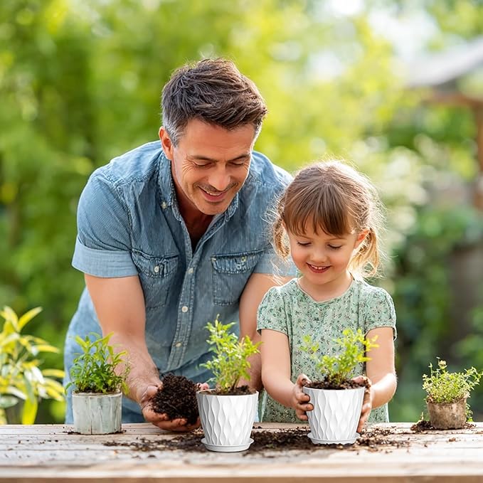 - 【Modern Wave Texture Design】With a simple modern aesthetic and a clean matte finish, this set of 6 small plant pots features a 3D wave-like texture, adding a touch of elegance to any space. Perfect for starting seedlings, or home/office decor, these pots for plants are ideal for gardening