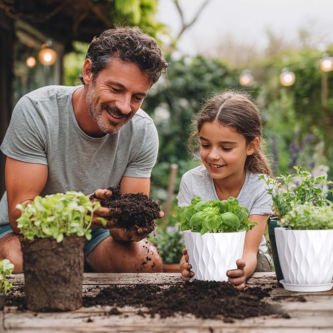 - 【Perfect Size for Versatile Planting】These 7 inch plant pots bulk are ideally sized for small to medium houseplants, including: Pothos, Snake Plant, Aloe Vera, ZZ Plant; African Violet, Miniature Roses; Mint, Basil; Succulents & Cacti. The decorative plant pots make a fantastic gift for friends and family who love growing plants