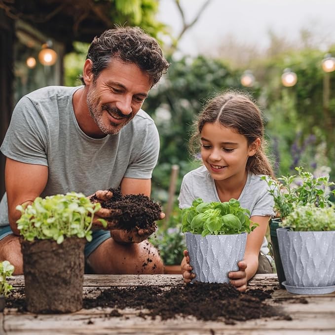 - 【Plant Pots with Drainage Holes and Trays】Plastic plant pot features drainage holes that promote proper air circulation for roots, ensuring healthy growth and preventing waterlogging, small uniform holes prevent soil leakage. While the matching saucers catch excess water to keep surfaces clean and dry