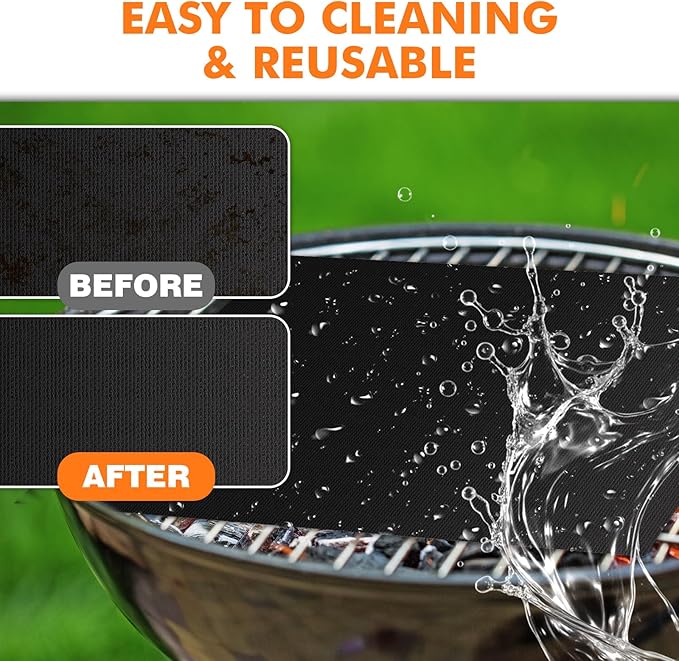 - Durable Construction with Excellent Heat Resistance – Made from high-quality fiberglass fabric with a premium non-stick coating, these heat resistant grill mats endure temperatures up to 1000°F without warping or fading. Designed for long-lasting use, they maintain their performance through many grilling sessions.