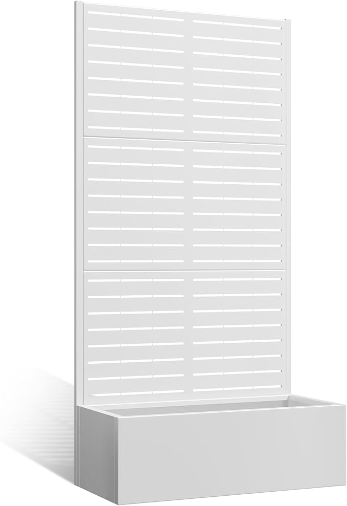- 🛡️【Outdoor Privacy Screen & Metal Planter Box with Trellis】Use this metal planter box with trellis to create a natural divider on your patio, balcony, or yard. It’s more than just a garden raised bed for climbing plants—it’s also a beautiful metal planter with privacy screen that offers shade and separation. The sleek black frame and vertical lines of this metal planter box with trellis make it both decorative and practical.