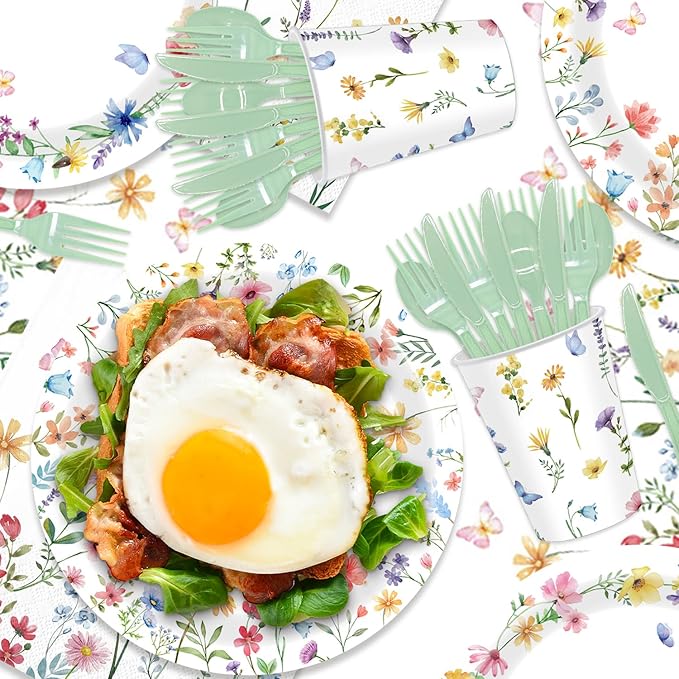 - 【Spring Wildflower Themed Design】 Floral plates featuring small, colorful wild flowers create a harmonious and lively atmosphere. The dancing butterflies add a touch of elegance to the design; Let all the family and friends who attend the party leave behind wonderful memories