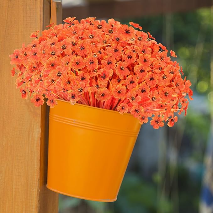 22Bunches of Outdoor Artificial Flowers, UV Resistant Fake Flowers Artificial Silk Flowers with Plastic Plants for Indoor Outdoor Front Porch Hanging Planter Decoration (22, Autumn Orange)