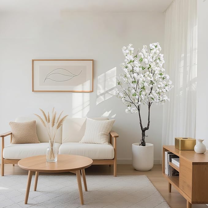 - 【Realistic Looking】There are no trouble of pollen discomfort in the white cherry blossom artificial indoor.The fake cherry blossom creates a natural aesthetic that never withers with extremely realistic details and zero maintenance characteristics. Whether it's lighting up corners of your home or enhancing the texture of commercial spaces, it is an ideal choice that balances environmental protection, economy, and decoration.
