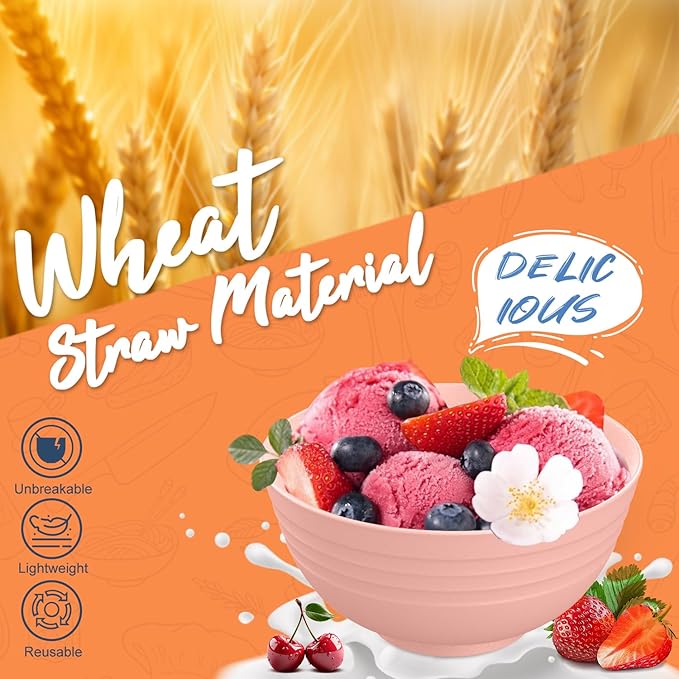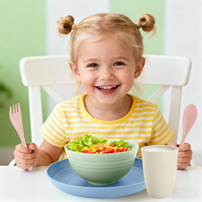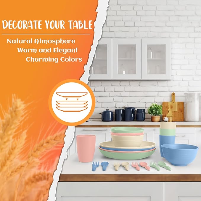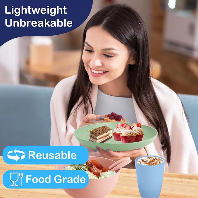 - Safe & Unbreakable Material: Prioritizing your family's well-being, this dinnerware set is made of renewable wheat straw fiber and food-grade PP plastic - BPA-free for worry-free daily use. Unlike fragile plastic or porcelain that chip, crack, or shatter easily, these plates and bowls are unbreakable, standing up to drops, impacts, and busy household life. The material blend ensures long-lasting reuse , making it a smart, sustainable choice for every kitchen.