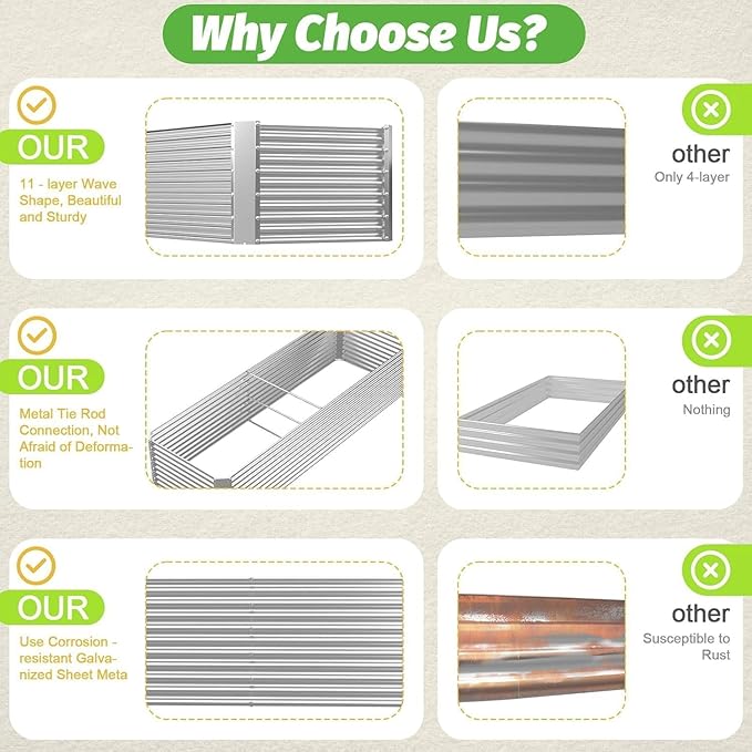 - Easy to assemble: The raised bed has simple structure, we will provide clear instructions to shorten your assembly time.