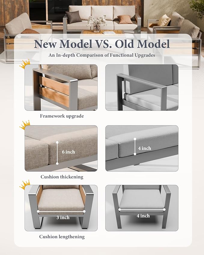 - ⛱️【Rust-resistant All-Aluminum Frame】Crafted with a brushed aluminum technique, aluminum frame, stainless steel screws, this outdoor furniture set is resistant to rain, snow, and sun exposure, it's water-resistant, and rust-resistant so you can feel safe leaving this set outdoors no matter the season. Its lightweight design allows for effortless movement and repositioning. Perfectly fitting with your poolside area, backyard, poolside, balcony, garden and deck.