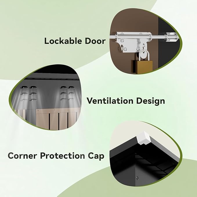 - Lockable Door and Vents:The lockable door provides security,keeps your tools away from being stolen,and avoids small animals from entering accidently;Two Top Vents for Better Airflow,Keeping the Space Cool and Odor-Free