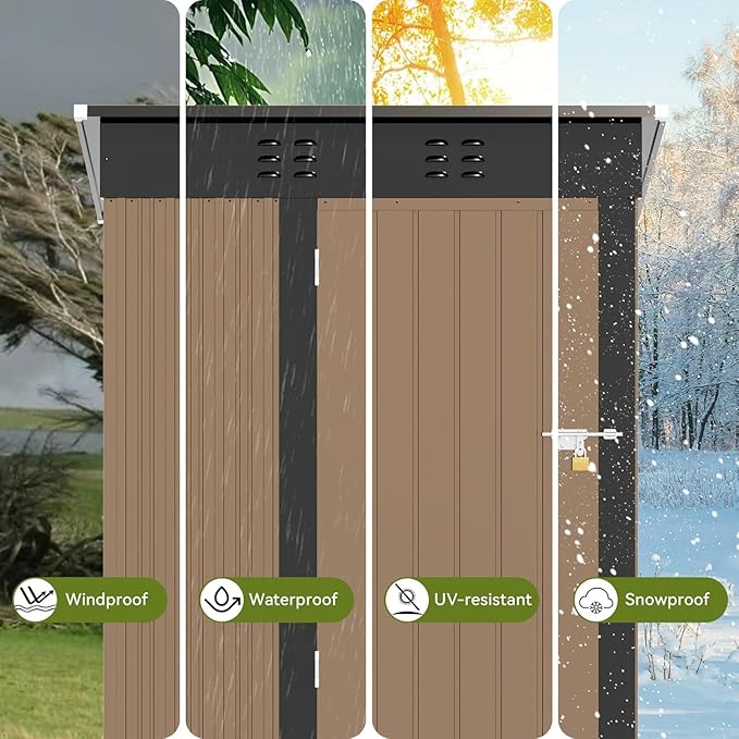 COMHOMA Shed Outdoor Storage Shed Metal,Lockable Doors Tool Sheds with Sloping Roof,Steel Garden Shed with Air Vent for Backyard,Patio,Lawn,Poolside (Brown, 5'*3')