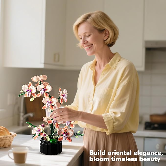 Orchid Building Sets Artificial Flowers Plant Gifts for Her Adults Girls Botanical Collection for Home Kitchen Desk Decor