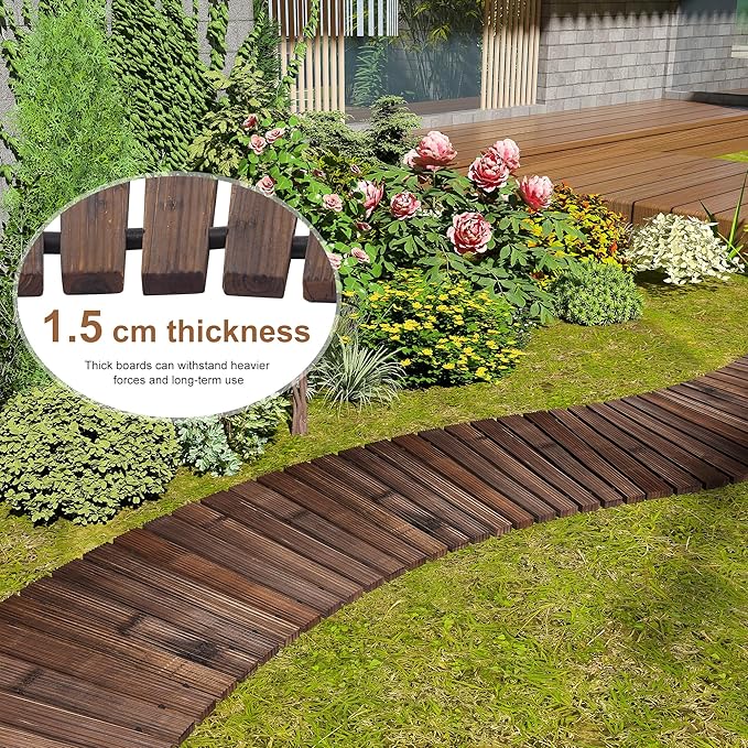 FILWH Wooden Garden Pathway Outdoor Roll-Out Walkway Weather-Resistant Fir Wood Curved or Straight Boardwalk Decorative Garden for Backyard,Beach,Wedding Party Pathways (Carbonized, 6FT Curved)