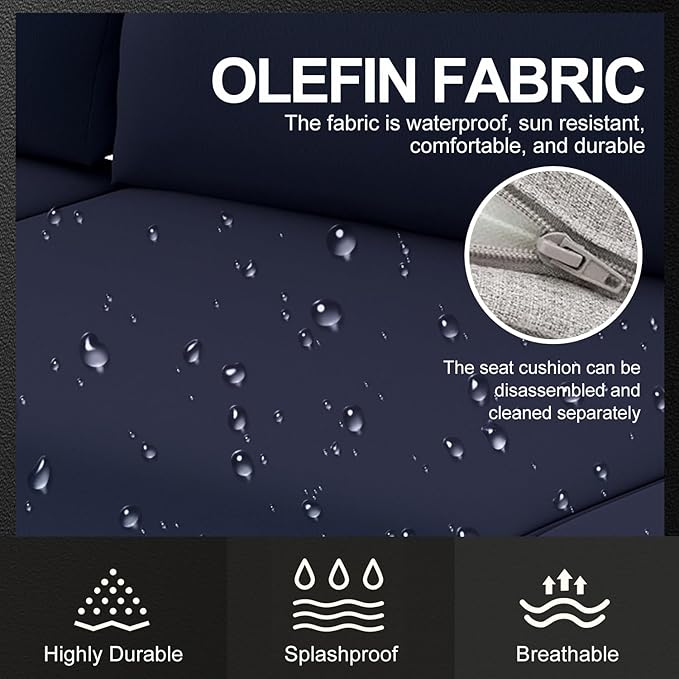 - 【Premium Olefin Fabric Cushions】 Designed for superior comfort, the cushions feature high-quality Olefin fabric that is soft, breathable, and moisture-resistant. Its fade-proof and stain-resistant properties make maintenance effortless, ensuring lasting beauty and comfort in your outdoor space.