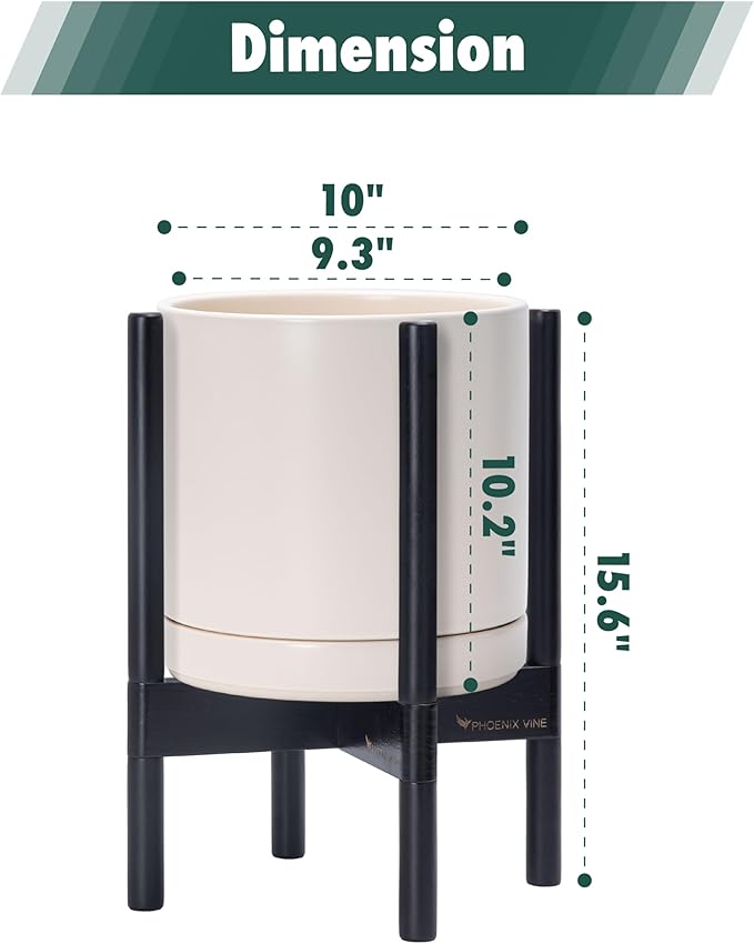 - A Complete Set: Mid-century ceramic planter, combined with a ebony wood stand that match perfectly together and looks great in anywhere.
