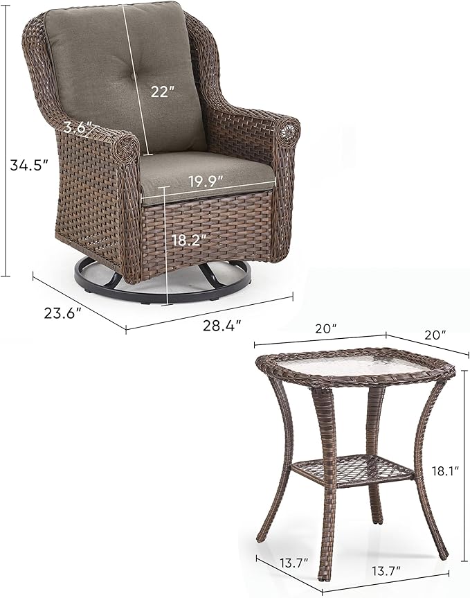 - STYLISH ALL-WEATHER HANDWOVEN WICKER: Breathable, Water&UV&Fade resistant rattan style patio set will be often used and decorated your porch, yard, garden, poolside, poolside