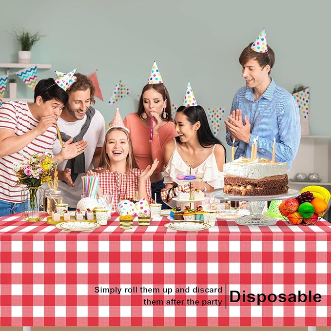 - 【Enjoy Your Party】The red and white checkered tablecloth features a red theme to add a fun pop of color to every of your gatherings. Impress your guests throughout the party. When the party is over, you can spend more time with family or friends and less time cleaning up. A red checkered tablecloth is a beautiful addition to any party or event