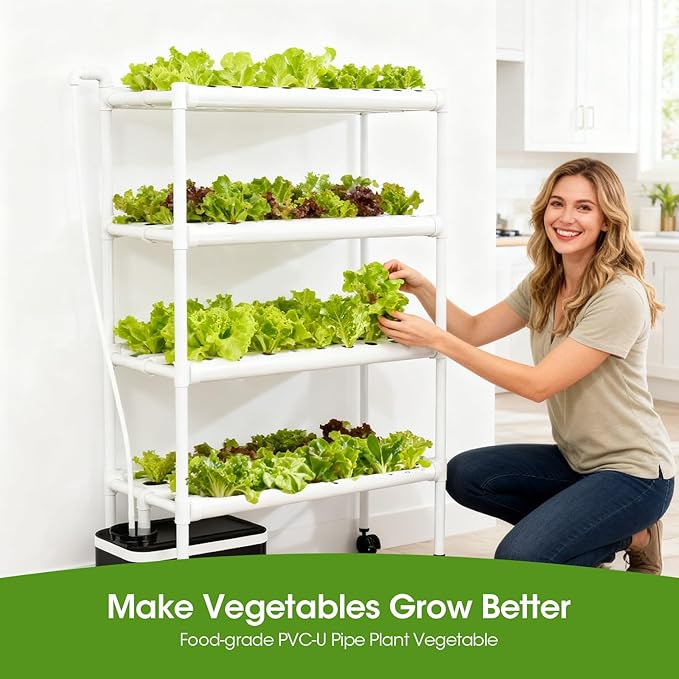 Hydroponic Growing White, 108 Planting Holes, Water Circulation System, Indoor Outdoor Garden Kit with Timer & Pump (34"x62"x15" in 108 Holes)