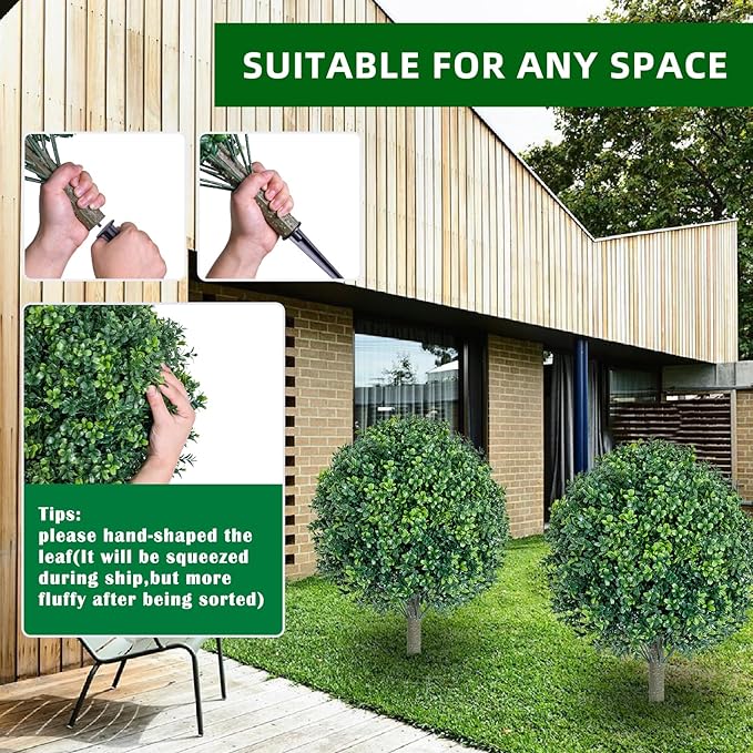 - Uv-Resistant and Weatherproof Durability : Our outdoor artificial trees, fake shrubs, and boxwood plants feature UV-resistant material. This artificial topiary for outdoors won’t fade or break under sunlight or wind.