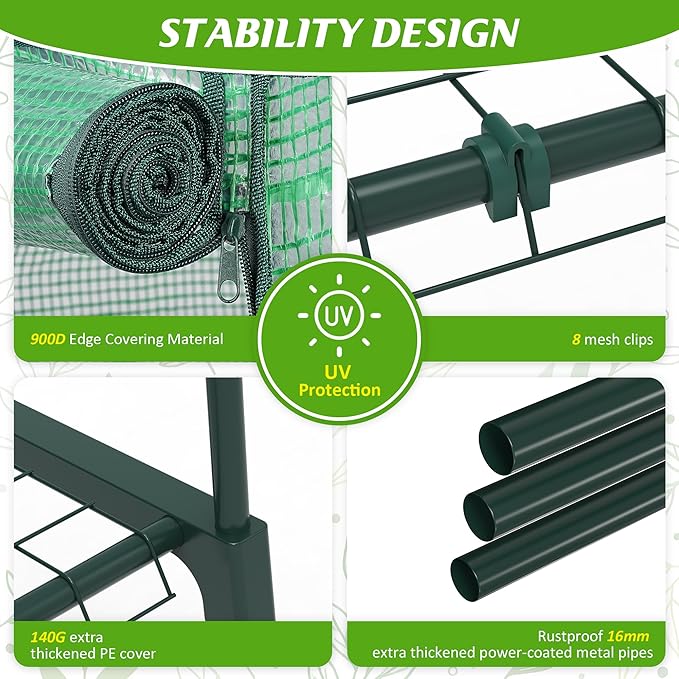 - Quick, Tool-Free Assembly:Easily set up or break down the greenhouse in minutes without tools. Its foldable design ensures compact storage and portability, perfect for balconies, patios, and seasonal use.
