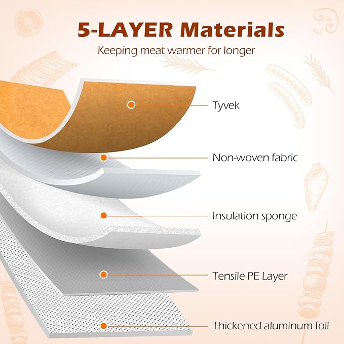 - Barbecue Accessories for Resting Meat: This BBQ Blanket features 5 layers of insulation to keep your meat tender and juicy, ensuring your brisket, pork shoulder, steaks and turkey stay an optimal resting temperature, whether during transport or at rest. And full of flavor—just as if they were freshly grilled!