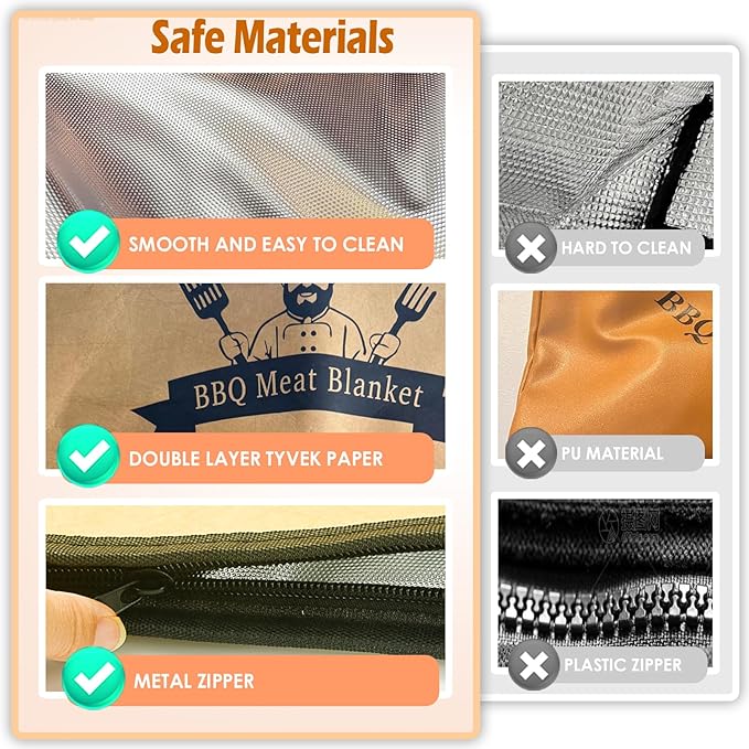 - A wide-mouth design: This Meat Resting Bag features a wide-mouth design and reinforced zipper, the BBQ Blanket for Resting Meat simplifies handling large meats like briskets, pork butt, turkeys or more. It's built for easy loading and unloading large cuts of meat, ensuring convenience every time.Perfect for family BBQs, tailgates, or backyard hangs