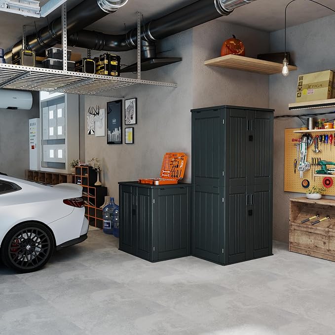- High-Density Polyethylene Construction: Crafted from durable high-density polyethylene resin plastic, this storage cabinet offers exceptional waterproofing, ensuring that your belongings remain dry and protected from the elements.
