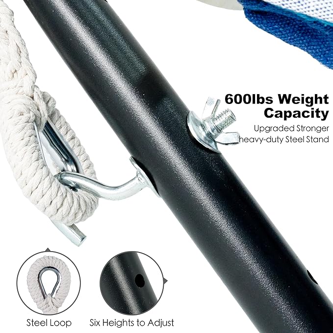 - ✅ASSEMBLES IN MINUTES: Easy to use without any tools, just align the stnad holes, tighten the knob and hang the hammock.Embrace the beauty and joy that this colorful masterpiece brings, and let it become the centerpiece of your relaxation oasis.