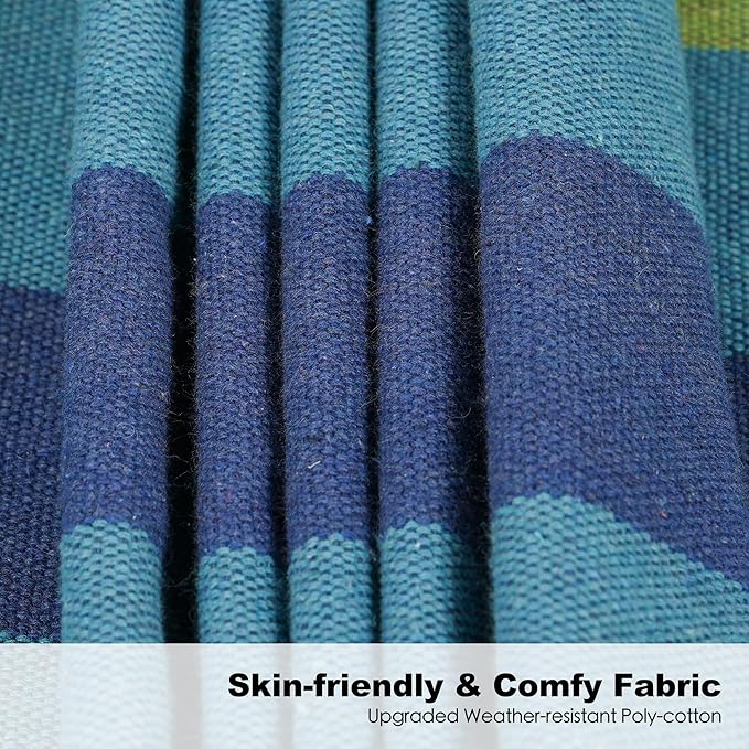 - ✅ANTI-ROLLOVER SPREADER BAR: Upgraded hammocks with anti-rollover curved spreader bars design, the 9 thicker cotton ropes are evenly distributed to make the hammock more stable, ensuring a balanced sleeping experience.