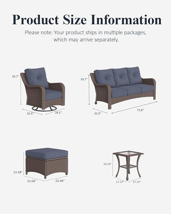 - Size : 6PCS-Swivel Chairs Set & Ottoman