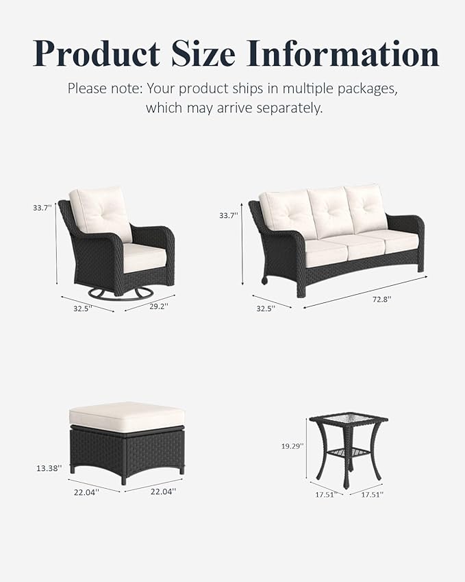 - Size : 6PCS-Swivel Chairs Set & Ottoman